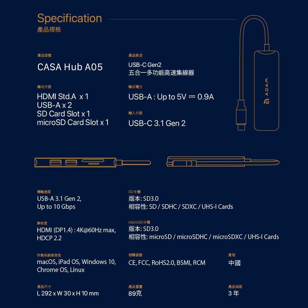 亞果元素 CASA Hub A01 USB 3.1 Type C 6 port 多功能集線器