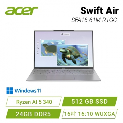 acer Swift Air SFA16-61M-R1GC 銀 宏碁全新AMD時尚輕纖筆電